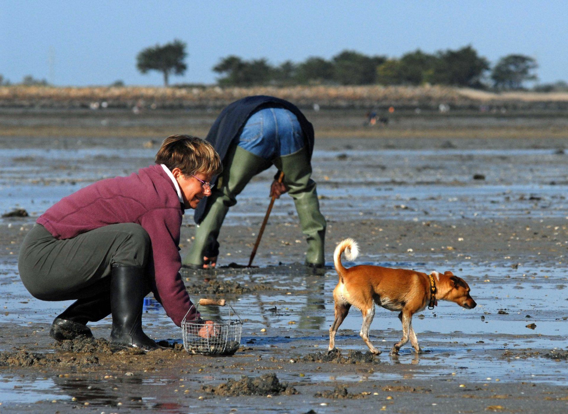 graben Dutzende von Muschelsuchern nach den köstlichen Palourdes