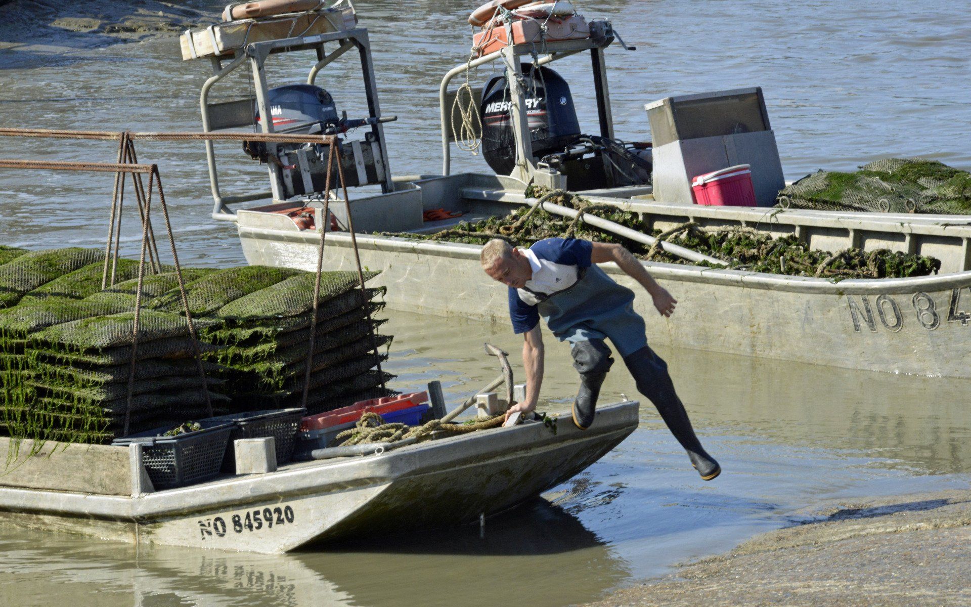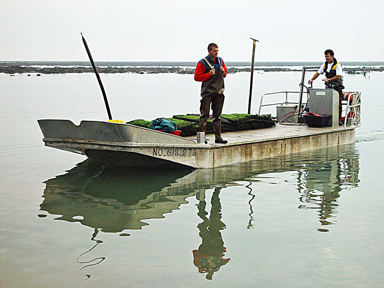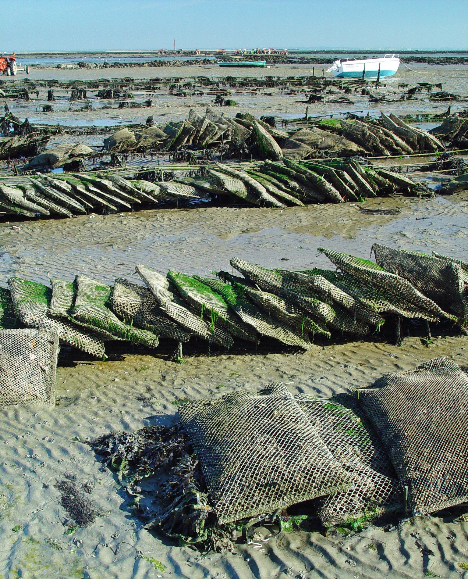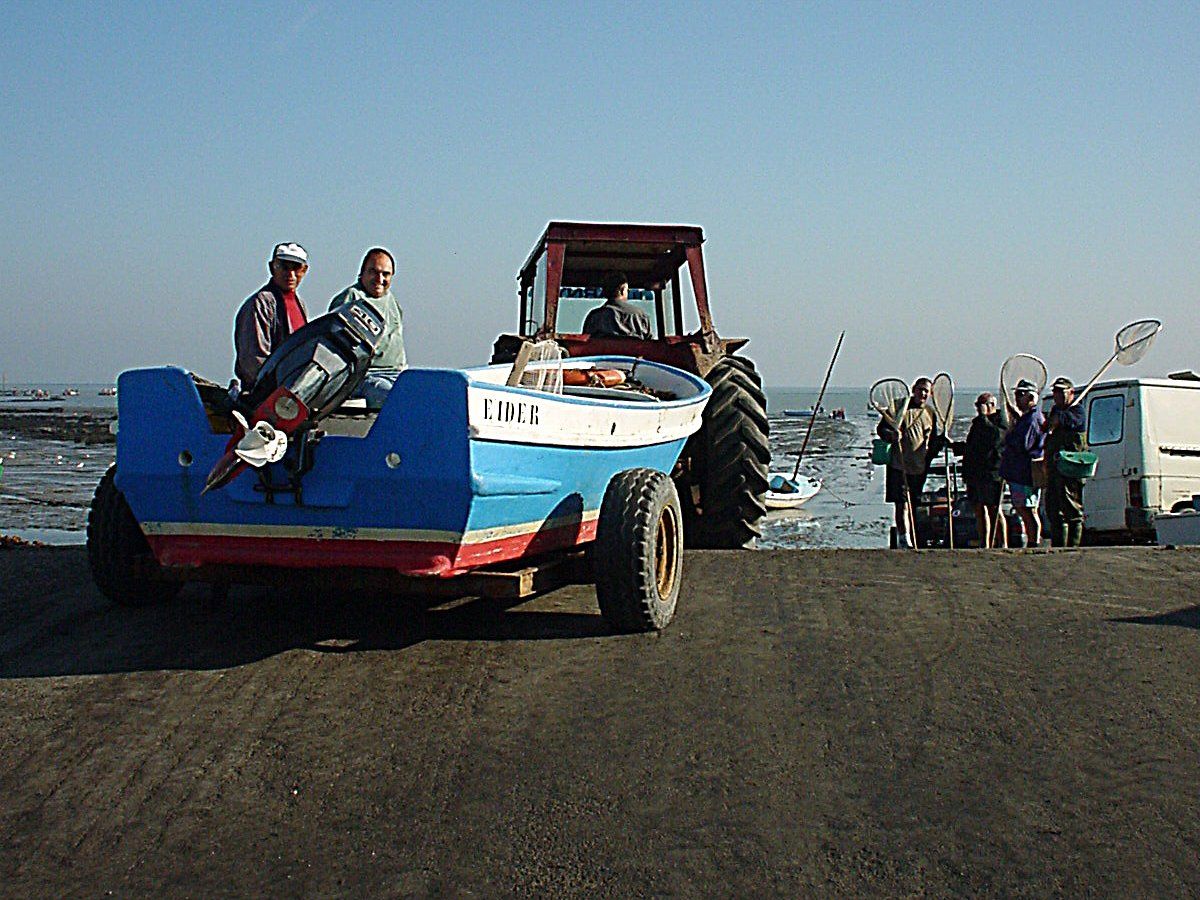 Diese Fotos sind vorwiegend auf der île de Noirmoutier entstanden. Ausflüge führten uns entlang der Küste über Pornic an den Plage de Tharon und zur Pointe de St. Gildas, im Mündungsgebiet der Loire. Im Port du Bec und dem Port du Bonhomme werden bei Ebbe Austern geerntet, auf flache Lastkähne aus Aluminium "plates" geladen, mit kommender Flut angelandet, auf Traktoren umgeladen, gereinigt und zum Verkauf gebracht.