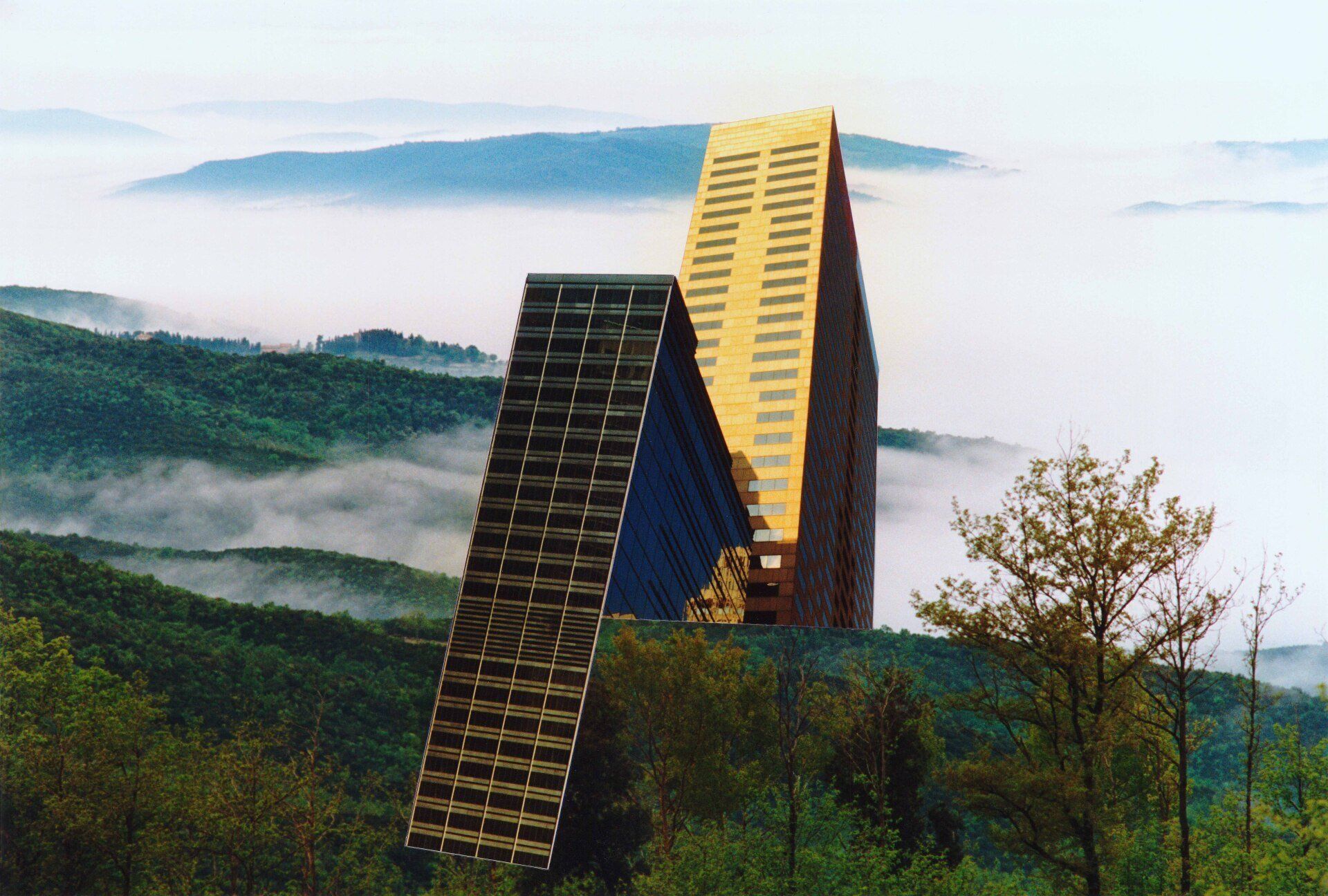 "Schiefen Turm" und Ming Pei's Bank of China in Hongkong (1. Bild v.l. der oberen Reihe/100 x 140 cm)
